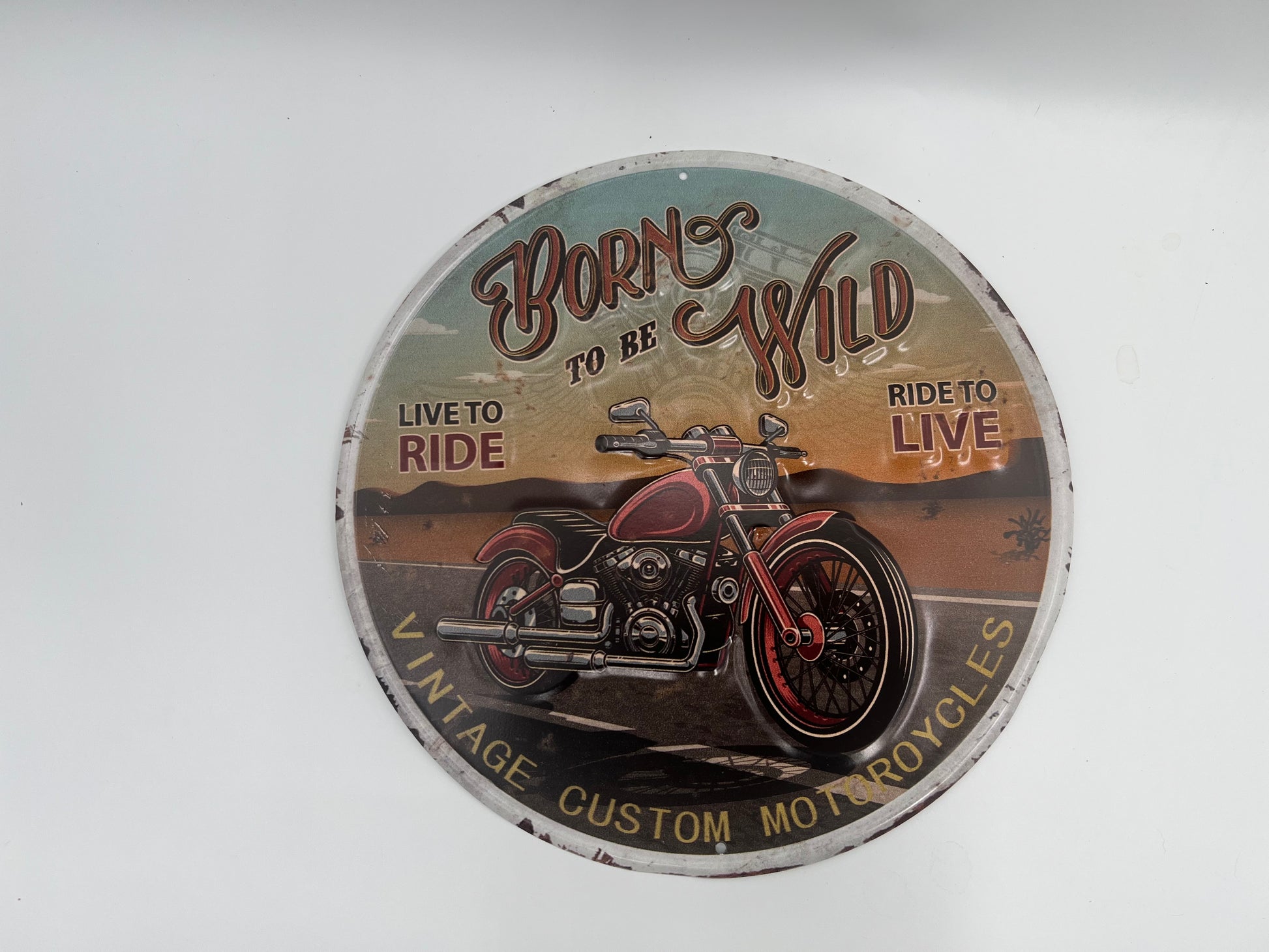 Dieses schöne Blechschild "Born to be Wild" sorgt für ein fröhliches Ambiente und schafft auf einfache Weise eine angenehme Atmosphäre. Ein tolles Geschenk für jeden Anlass!