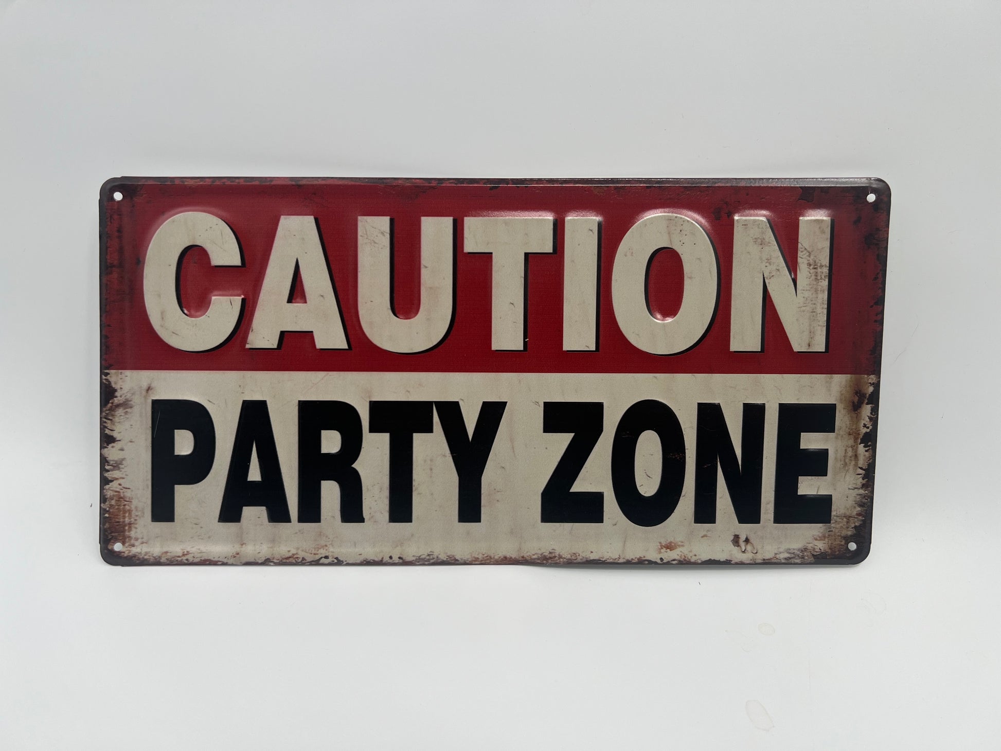 Dieses schöne Blechschild "Caution Party Zone" sorgt für ein fröhliches Ambiente und schafft auf einfache Weise eine angenehme Atmosphäre. Ein tolles Geschenk für jeden Anlass!