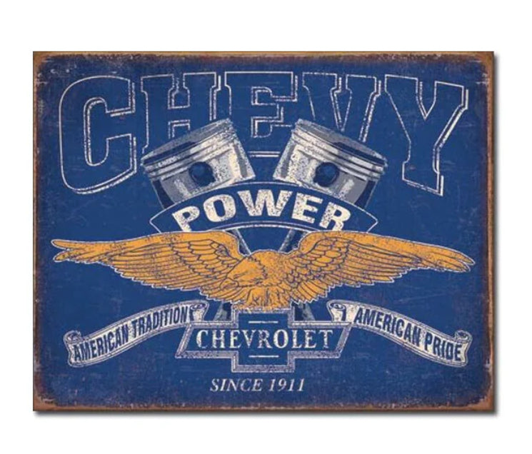 Dieses schöne Blechschild "Chevy Power" sorgt für ein fröhliches Ambiente und schafft auf einfache Weise eine angenehme Atmosphäre. Ein tolles Geschenk für jeden Anlass!