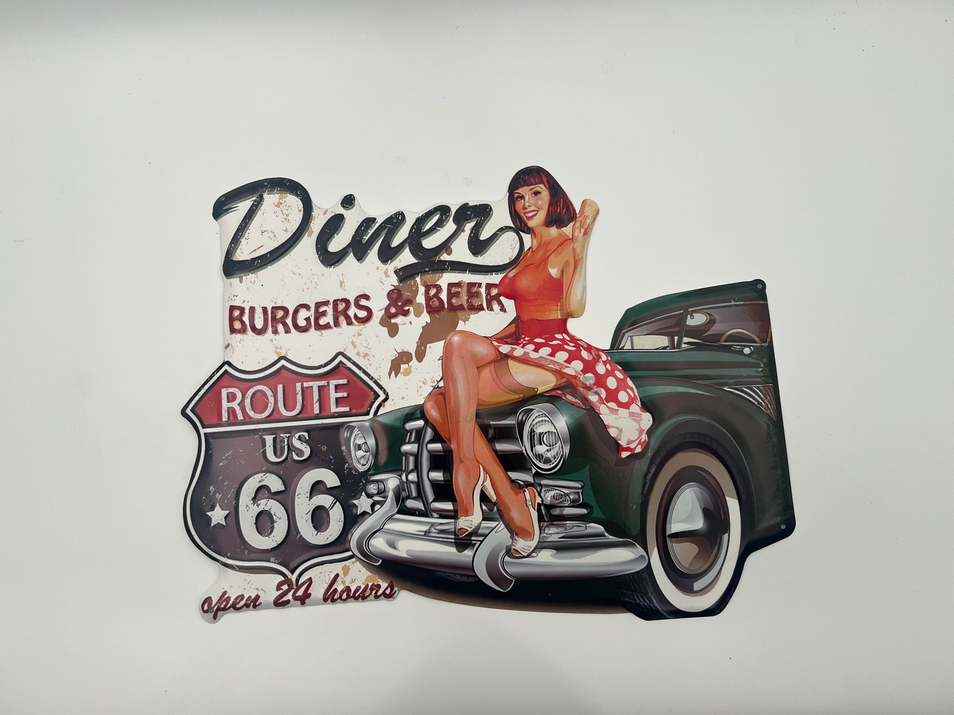 Dieses schöne Blechschild "DINER Burger Beer" sorgt für ein fröhliches Ambiente und schafft auf einfache Weise eine angenehme Atmosphäre. Ein tolles Geschenk für jeden Anlass!