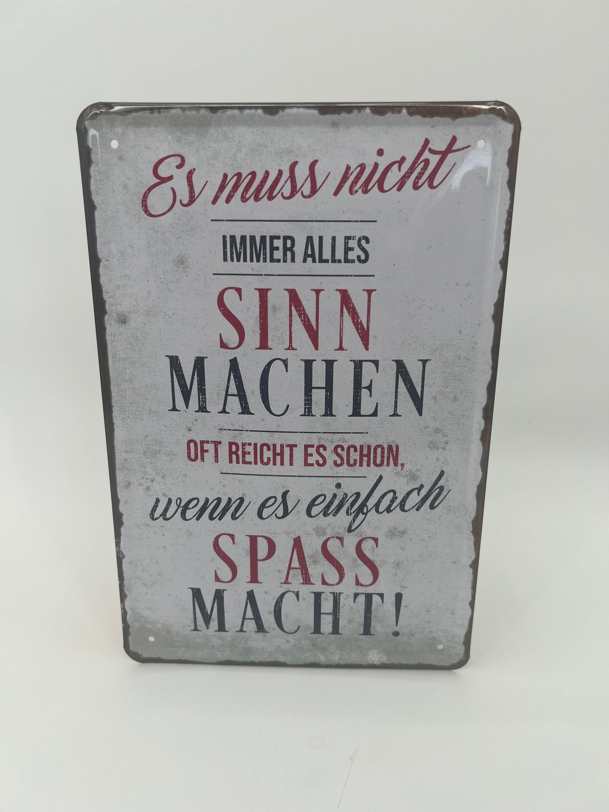 Dieses schöne Blechschild "Es muss nicht immer Alles SINN MACHEN" sorgt für ein fröhliches Ambiente und schafft auf einfache Weise eine angenehme Atmosphäre. Ein tolles Geschenk für jeden Anlass!