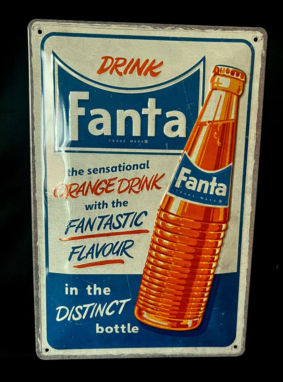 Bringe Erinnerungen und einen Hauch Retro mit dem Blechschild "Fanta" in deine Umgebung. Nostalgie pur für dein Zuhause oder Bar.