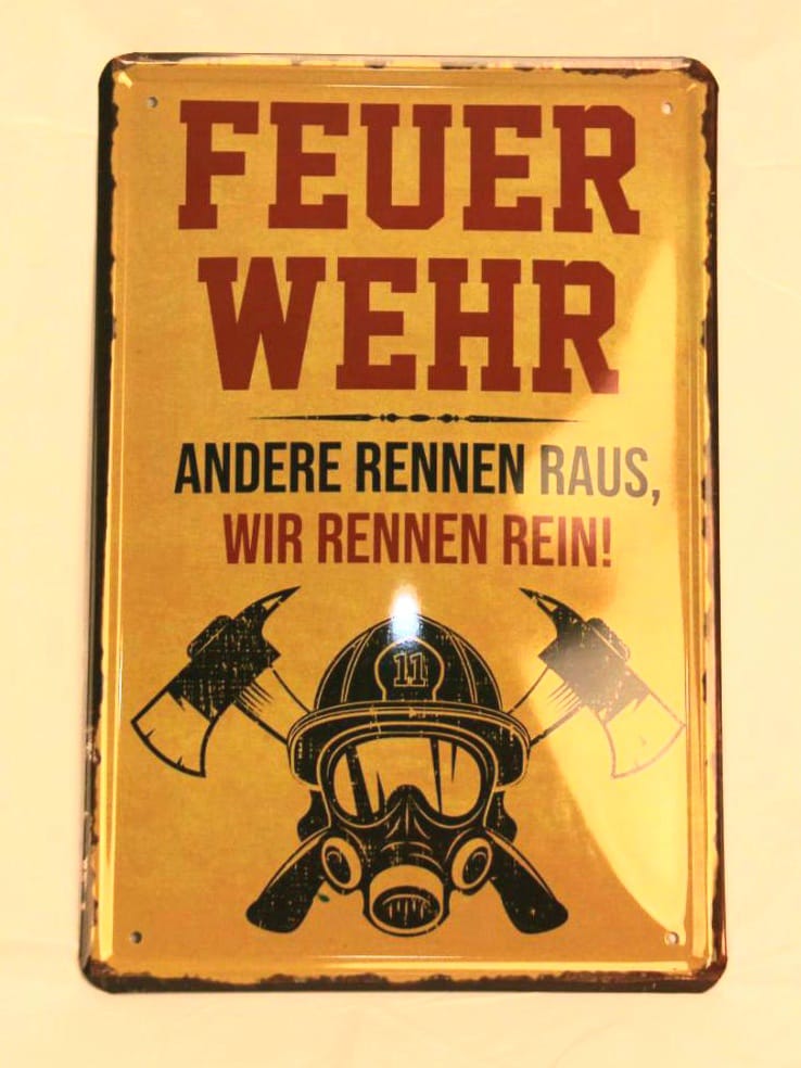 Blechschild "Feuerwehr - andere rennen raus, wir rennen rein"