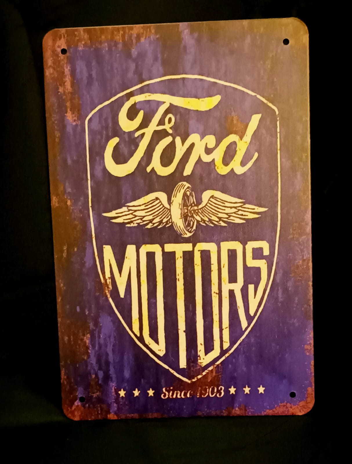 Das Blechschild "Ford MOTORS" ist ein schönes Motiv für Autoliebhaber und eignet sich optimal als Wanddekoration. Mit Sicherheit ein ganz besonderes Geschenk für jeden Ford-Fan!