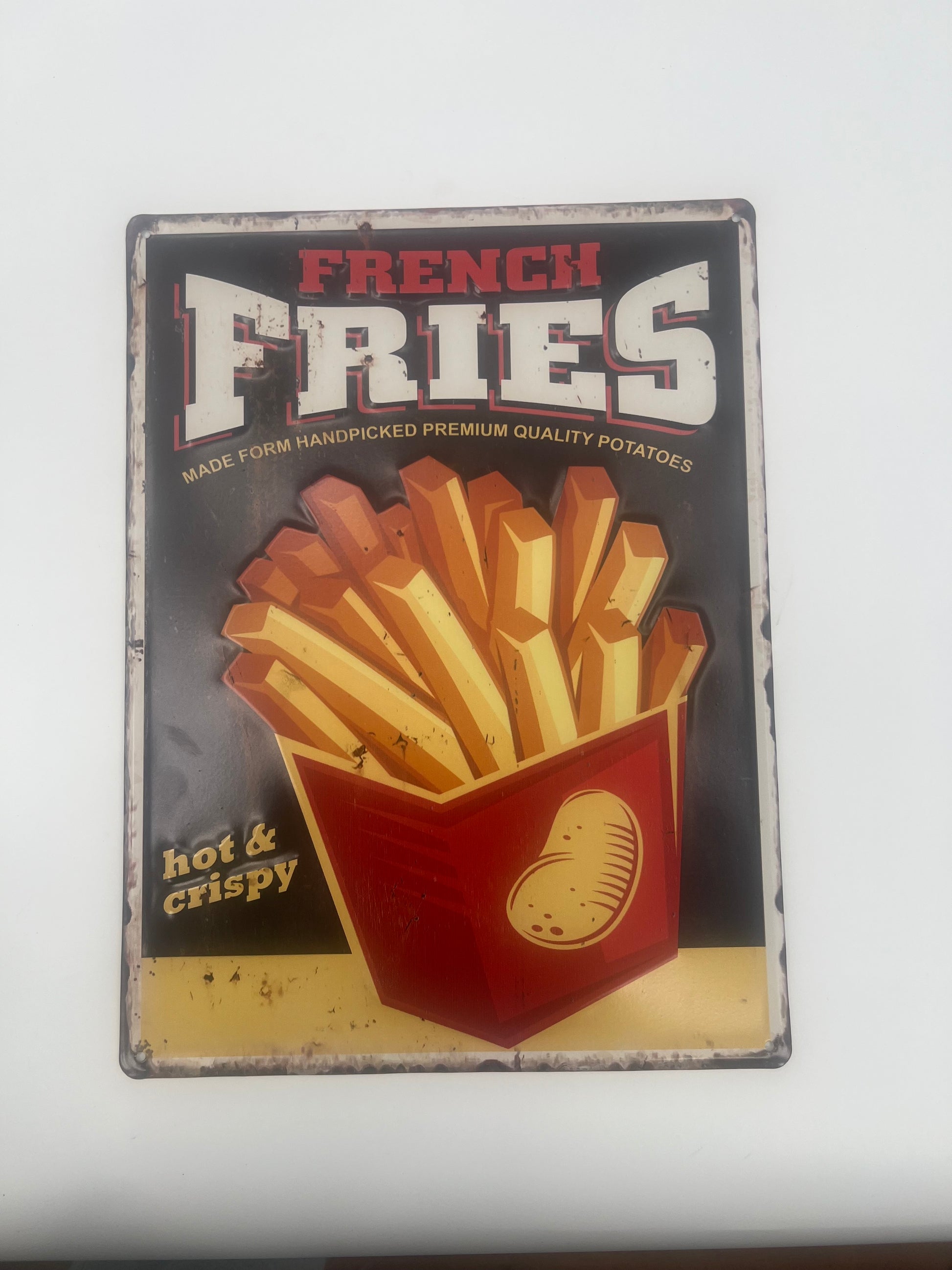 Dieses schöne Blechschild "French Fries" sorgt für ein fröhliches Ambiente und schafft auf einfache Weise eine angenehme Atmosphäre. Ein tolles Geschenk für jeden Anlass!