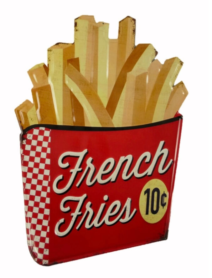 Dieses schöne Blechschild "French Fries 10c" sorgt für ein fröhliches Ambiente und schafft auf einfache Weise eine angenehme Atmosphäre. Ein tolles Geschenk für jeden Anlass!