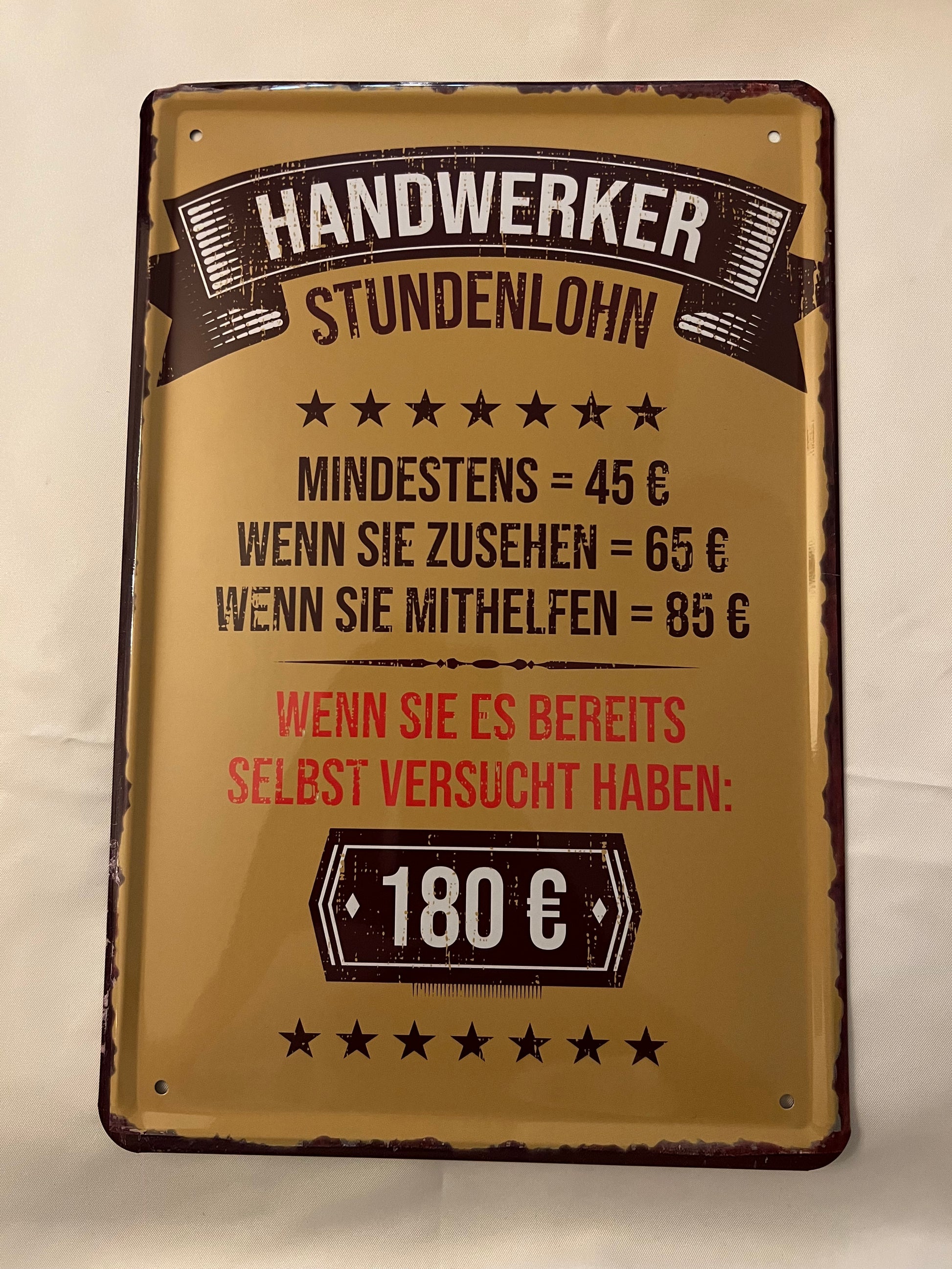 Blechschild "Handwerker Stundenlohn"