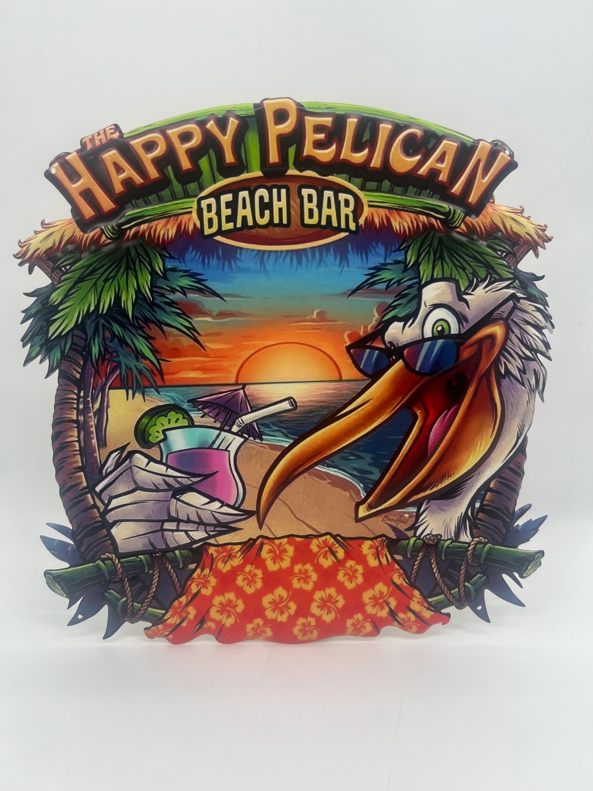 Dieses schöne Blechschild "Happy Pelican" sorgt für ein fröhliches Ambiente und schafft auf einfache Weise eine angenehme Atmosphäre. Ein tolles Geschenk für jeden Anlass!