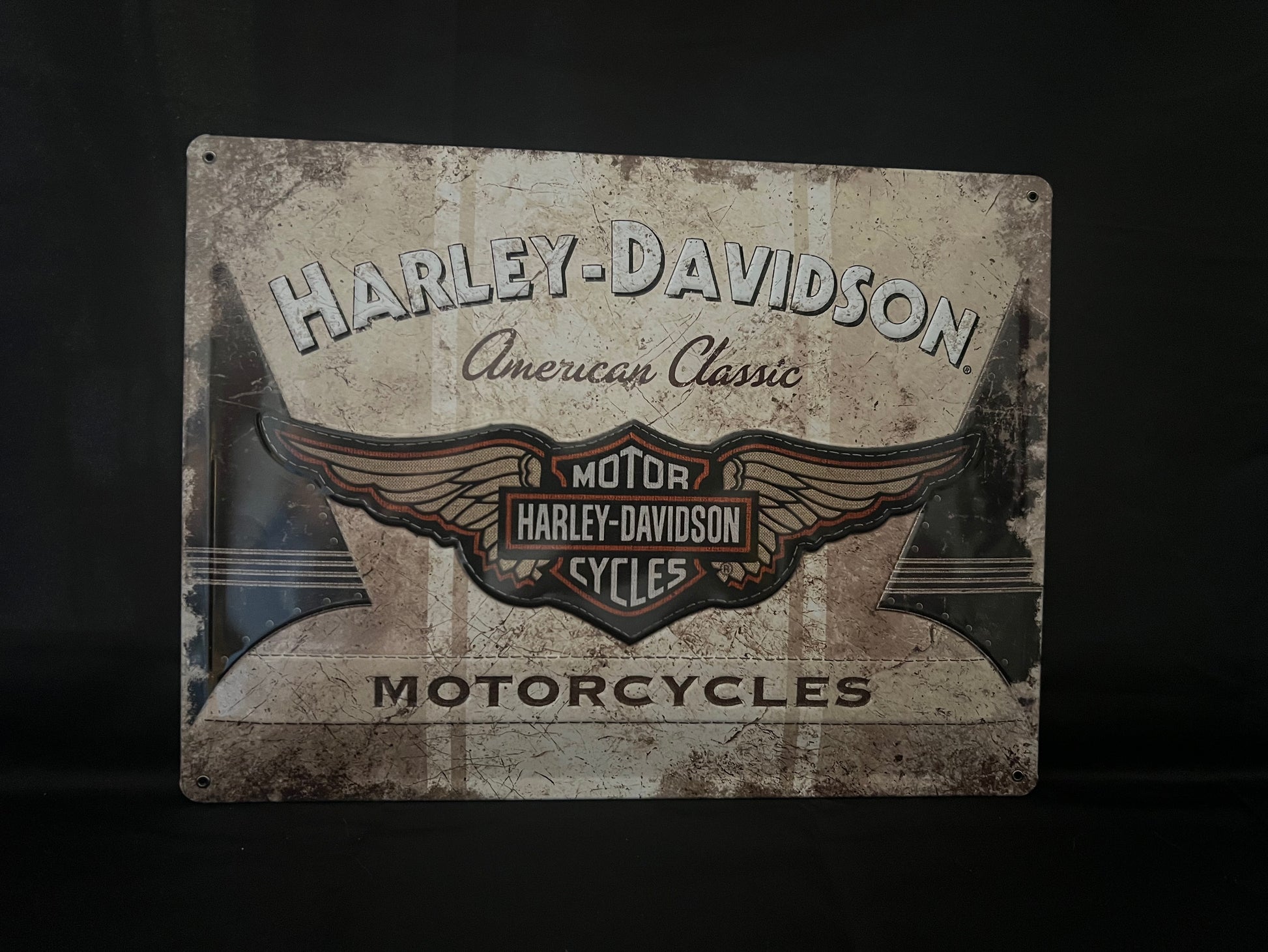 Erhalten Sie ein echtes Stück amerikanischer Kultur mit dem Blechschild Harley Davidson American Classic". Jedes Schild ist mit feinstem Material gefertigt, so dass es über viele Jahre hinweg eine Dekoration Ihrer Wahl bleibt.