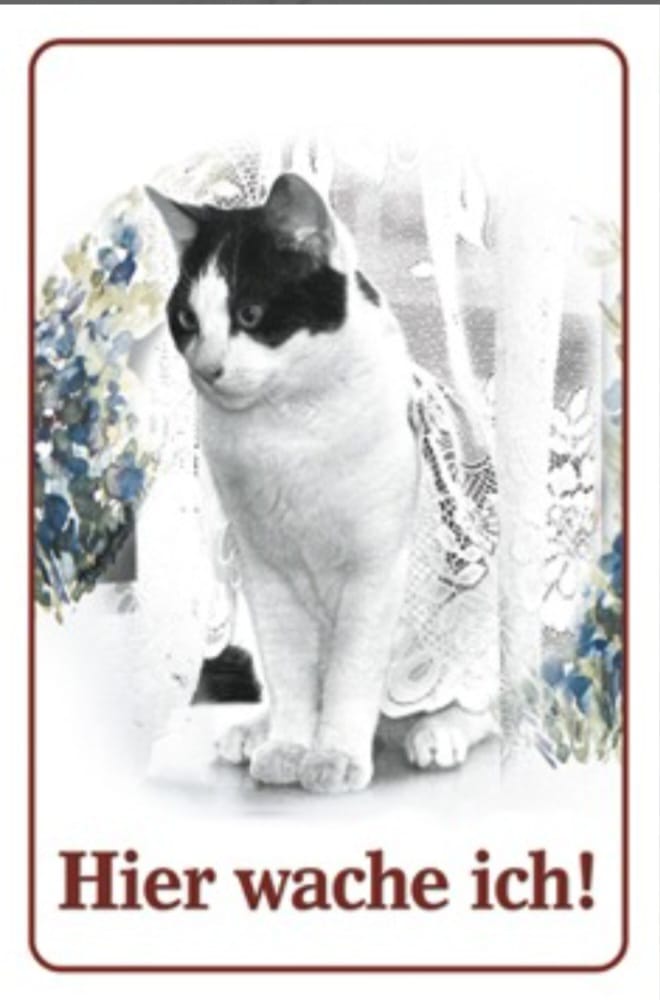 Verleihen Sie Ihren Räumen ein einzigartiges Flair mit diesem stilvollen Blechschild "Hier wache ich". Eine süße Katze, erinnert an die kindliche Unschuld. Genießen Sie eine begeisternde Dekoration voller besonderer Momente!