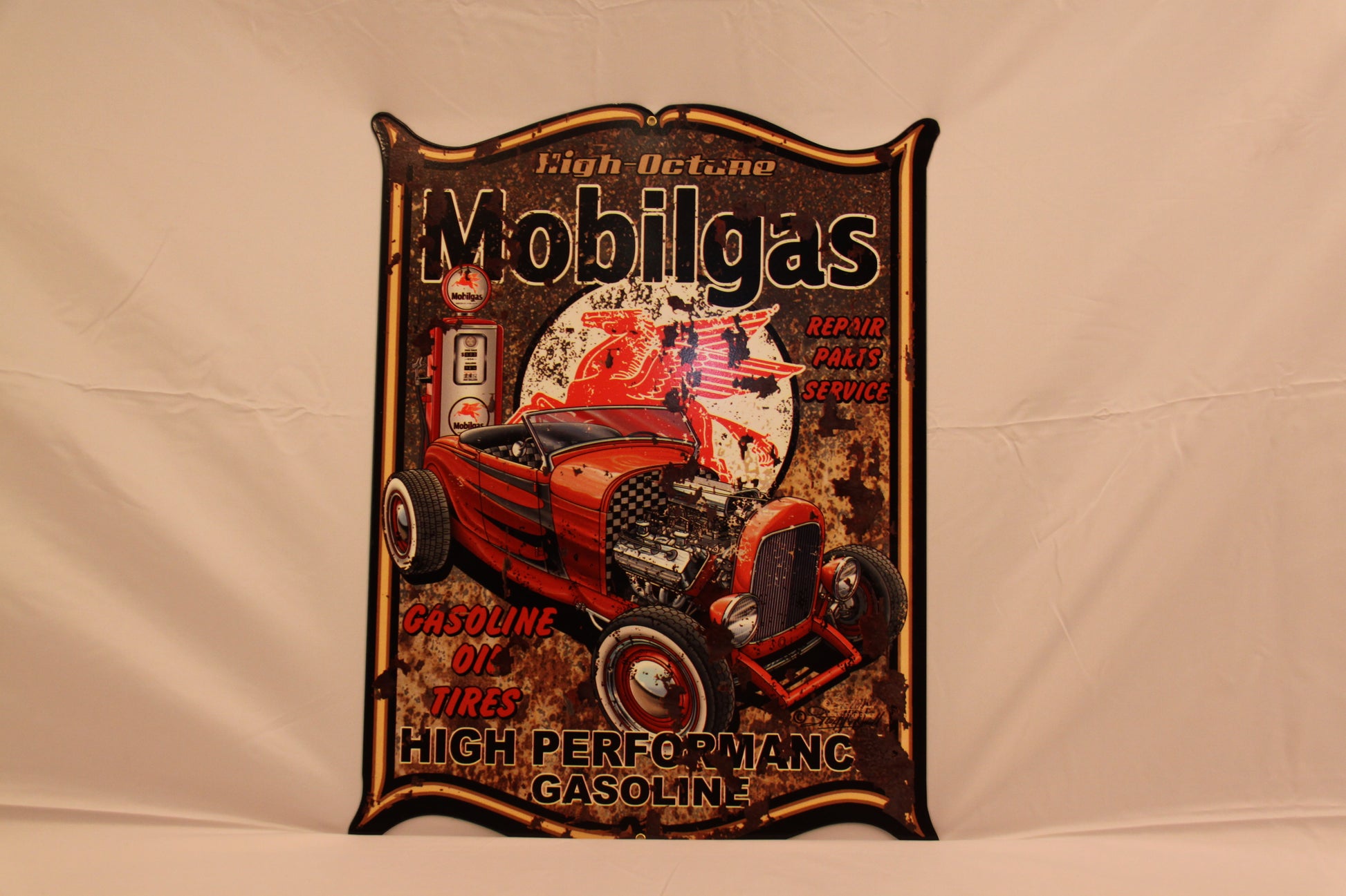 Dieses originelle Blechschild "High Octane Mobilgas" ist die ideale Ergänzung zu jeder Garage. Ein echter Blickfang, der zum Geburtstag oder zu Weihnachten ein tolles Geschenk ist und dem Beschenkten viel Freude bereiten wird.