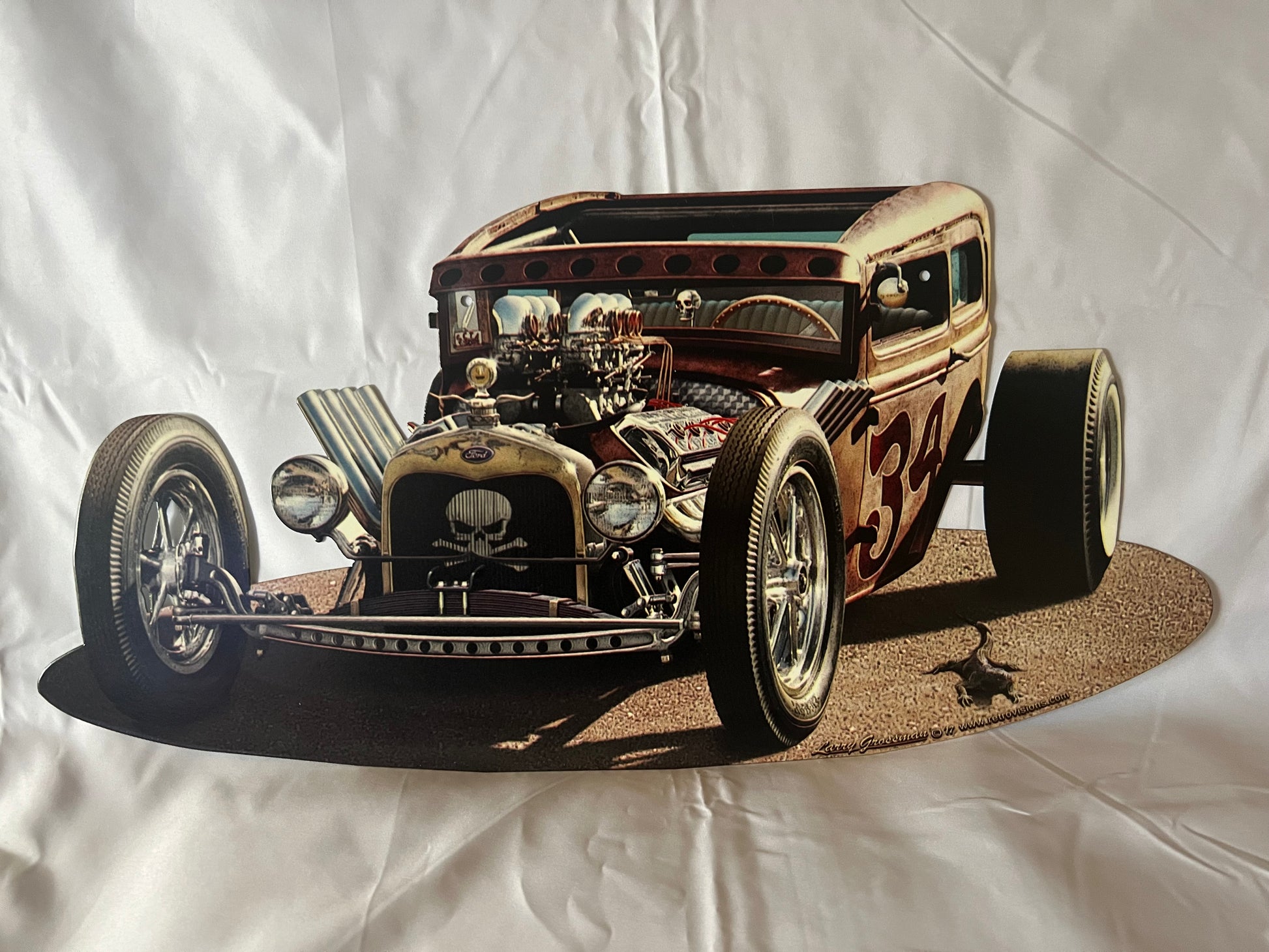 Erfreue Dich an diesem schönen Blechschild mit nostalgischem Hot Rod-Design. Egal ob im Wohnzimmer, Garage oder im Garten - dieses Schild ist ein echter Hingucker!