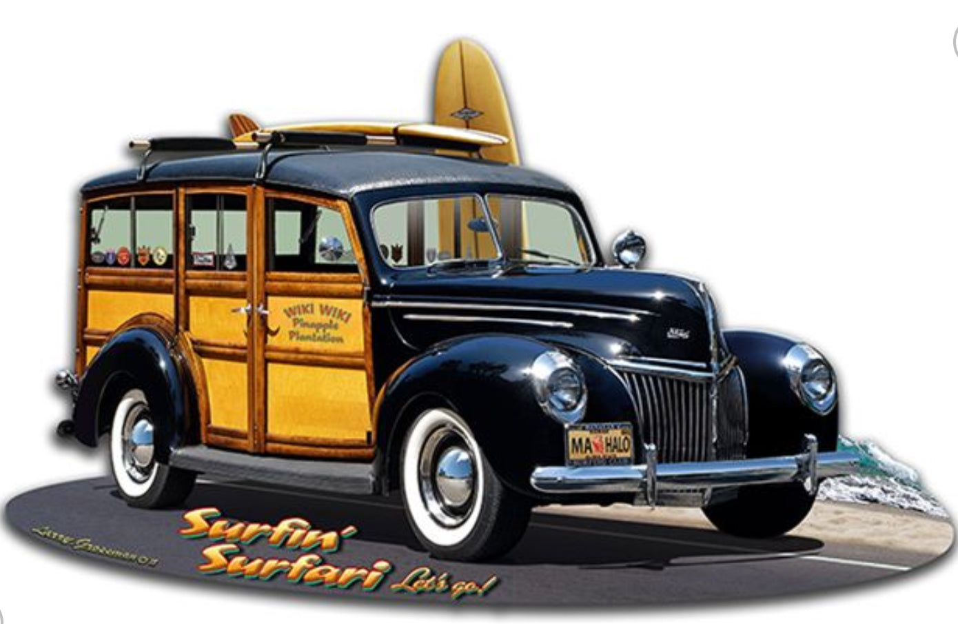 Blechschild "Hot Rod Woody Surfin Surfari"