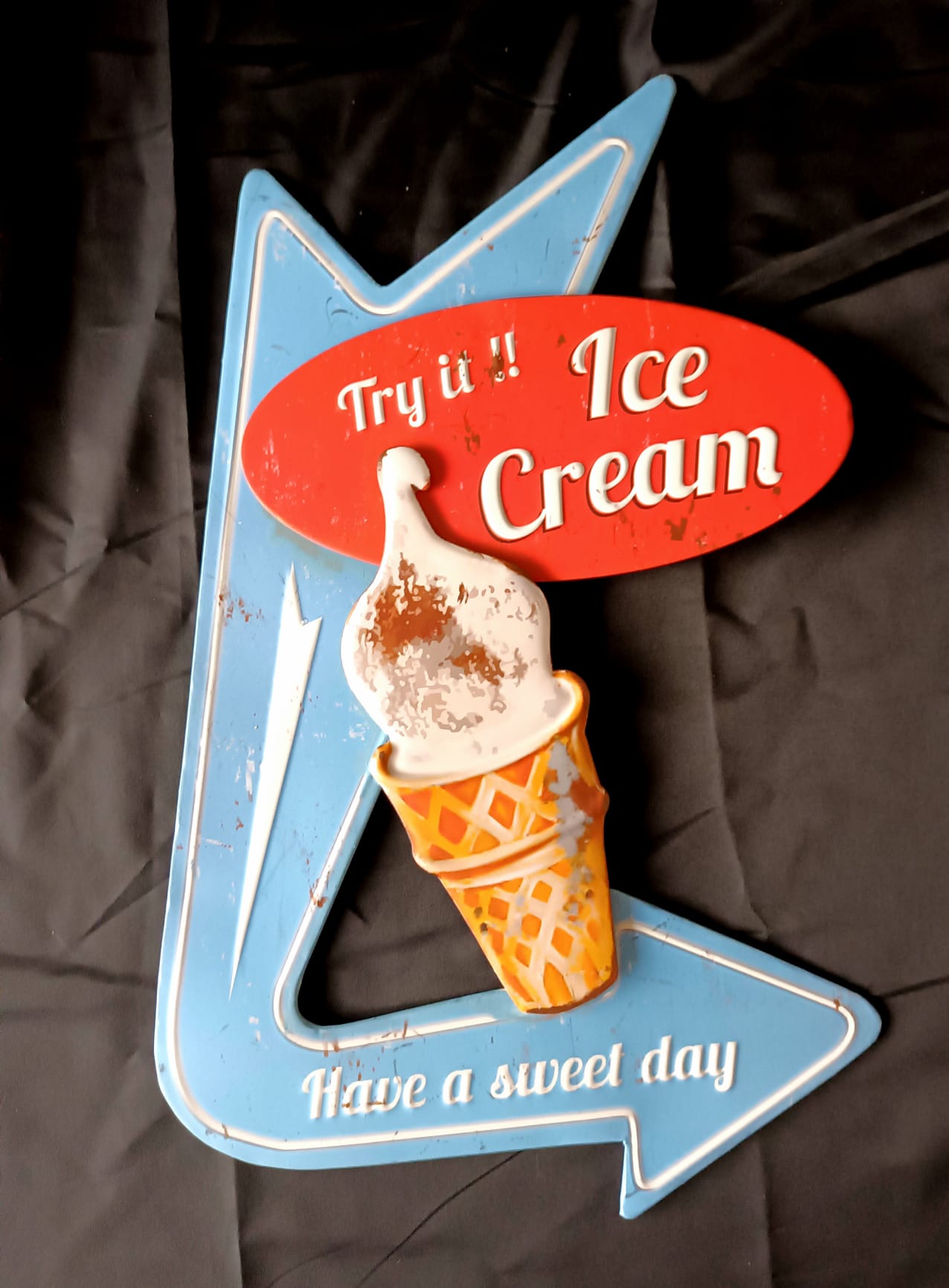 Dieses schöne Blechschild "Ice Cream" sorgt für ein fröhliches Ambiente und schafft auf einfache Weise eine angenehme Atmosphäre. Ein tolles Geschenk für jeden Anlass!