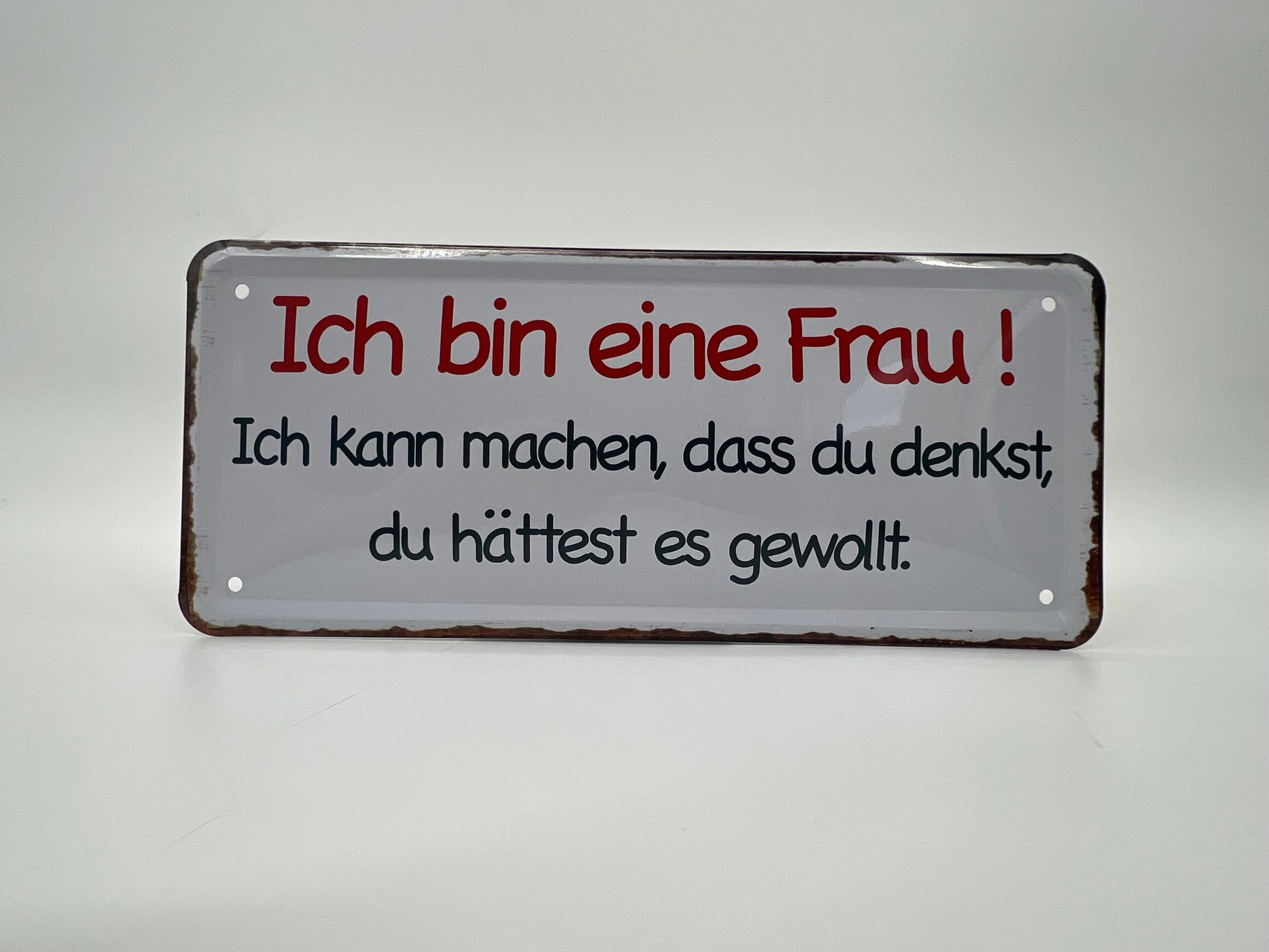 Dieses schöne Blechschild "Ich bin eine Frau" sorgt für ein fröhliches Ambiente und schafft auf einfache Weise eine angenehme Atmosphäre. Ein tolles Geschenk für jeden Anlass!