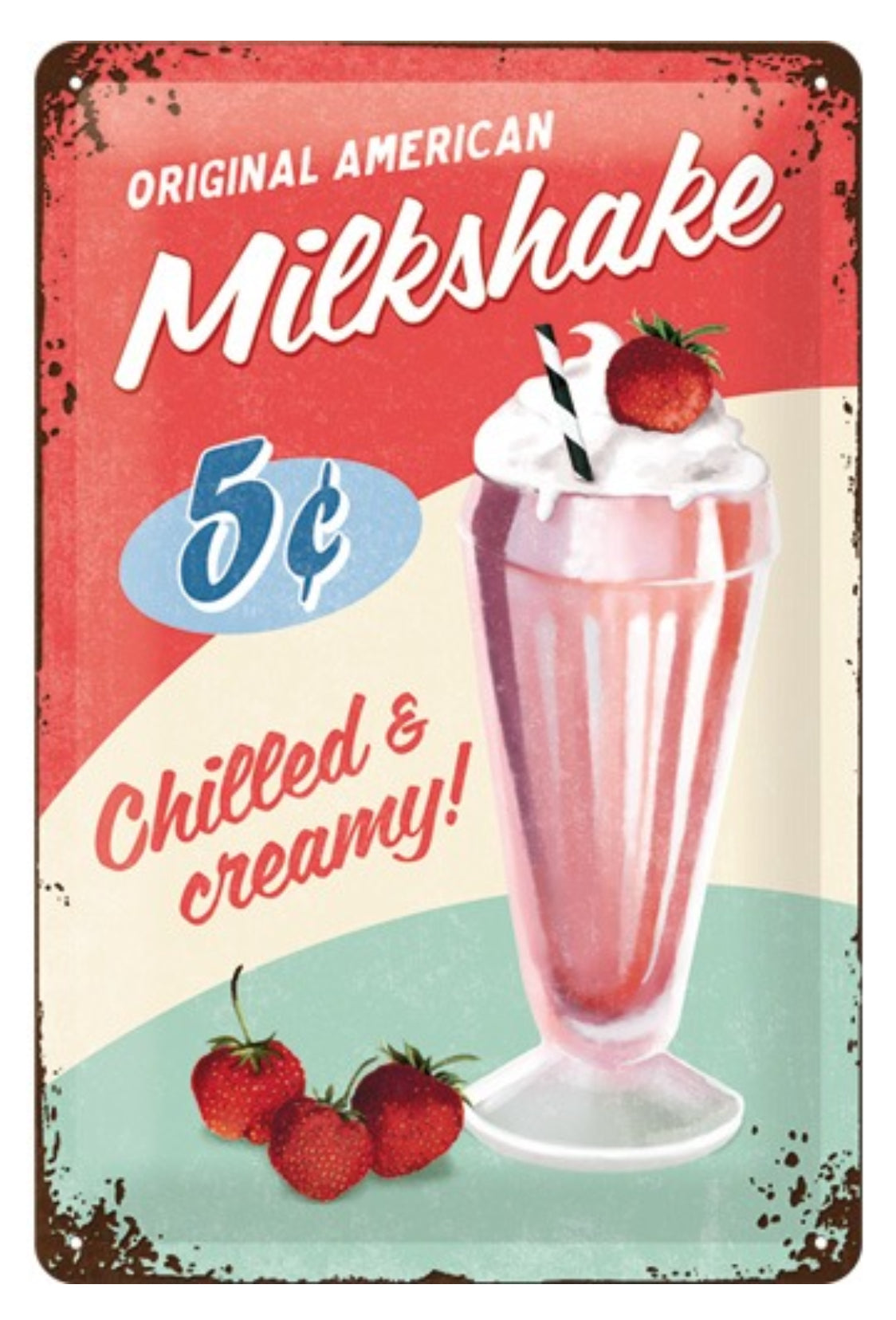 Dieses schöne Blechschild "Milkshake" sorgt für ein fröhliches Ambiente und schafft auf einfache Weise eine angenehme Atmosphäre. Ein tolles Geschenk für jeden Anlass!