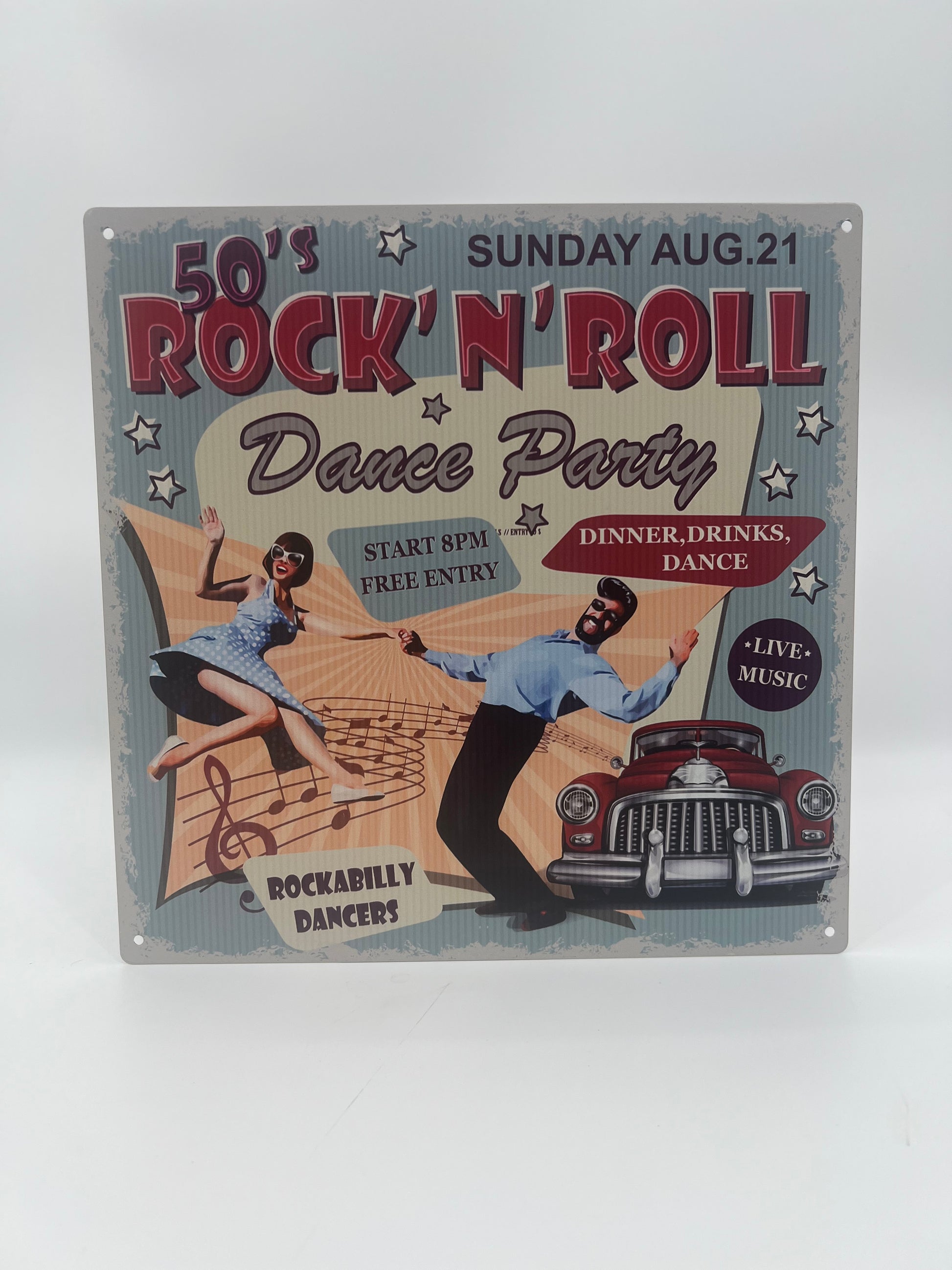 Dieses schöne Blechschild "Rocken Roll´Dance Party" sorgt für ein fröhliches Ambiente und schafft auf einfache Weise eine angenehme Atmosphäre. Ein tolles Geschenk für jeden Anlass!