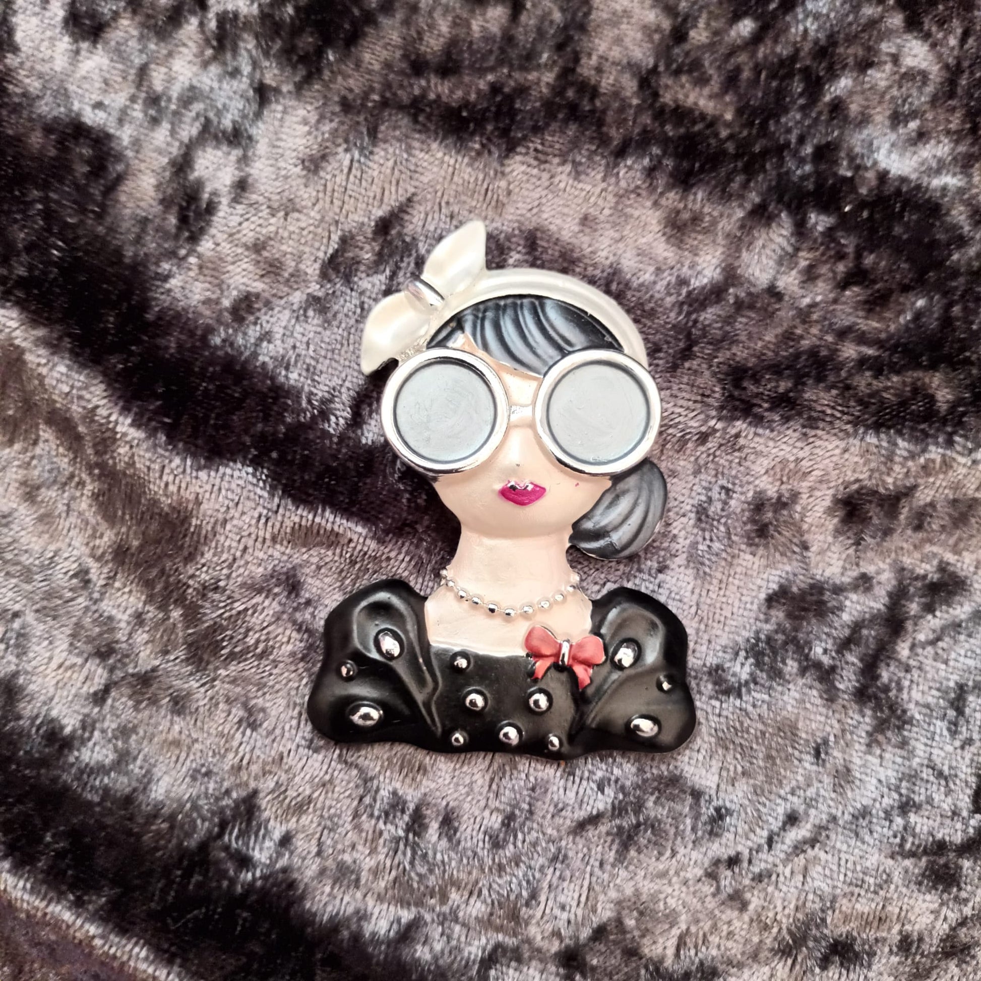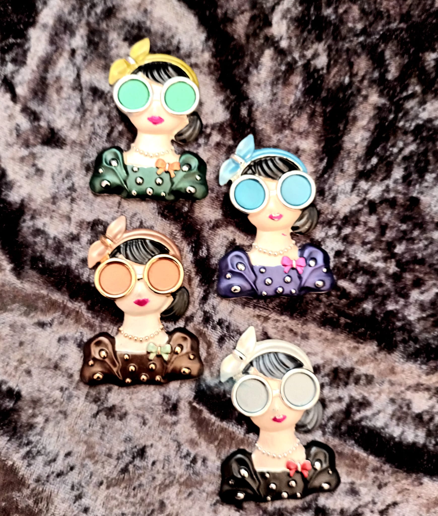 Magnet-Brosche "Pinup" mit Magnetverschluß in eleganten Farben, perfekt für kleine und groẞe Rockabellas