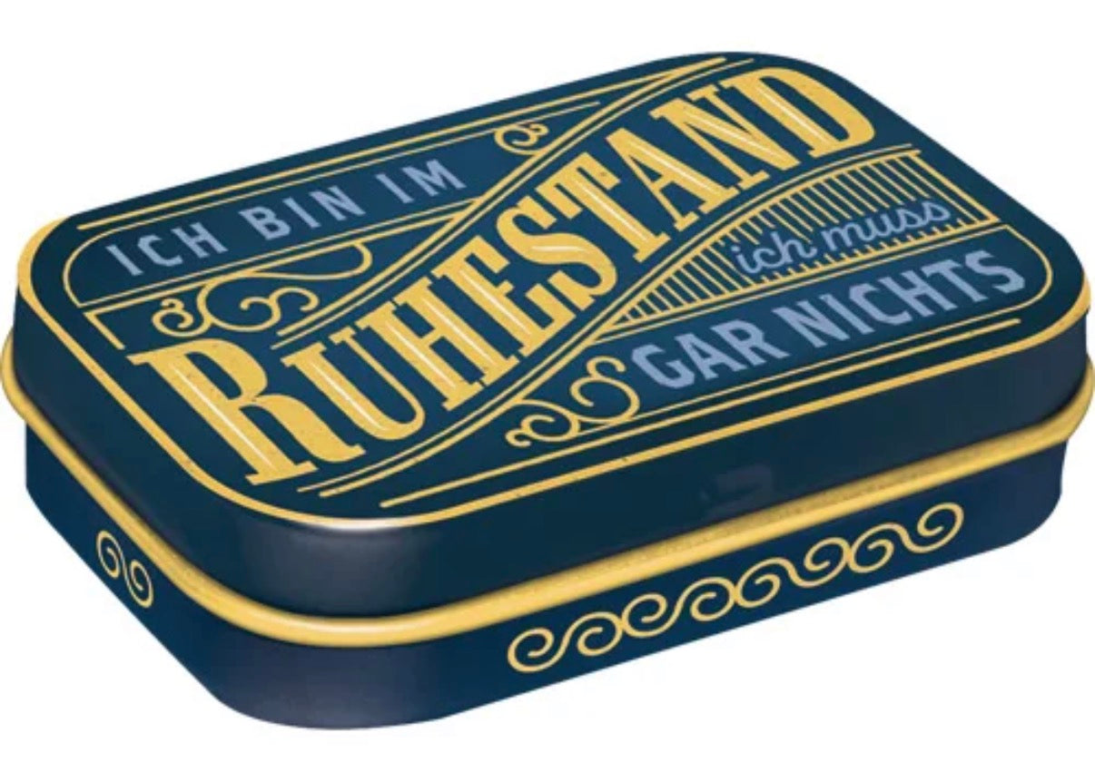 Blechdose "Ruhestand" gefüllt mit Pfefferminzdragees