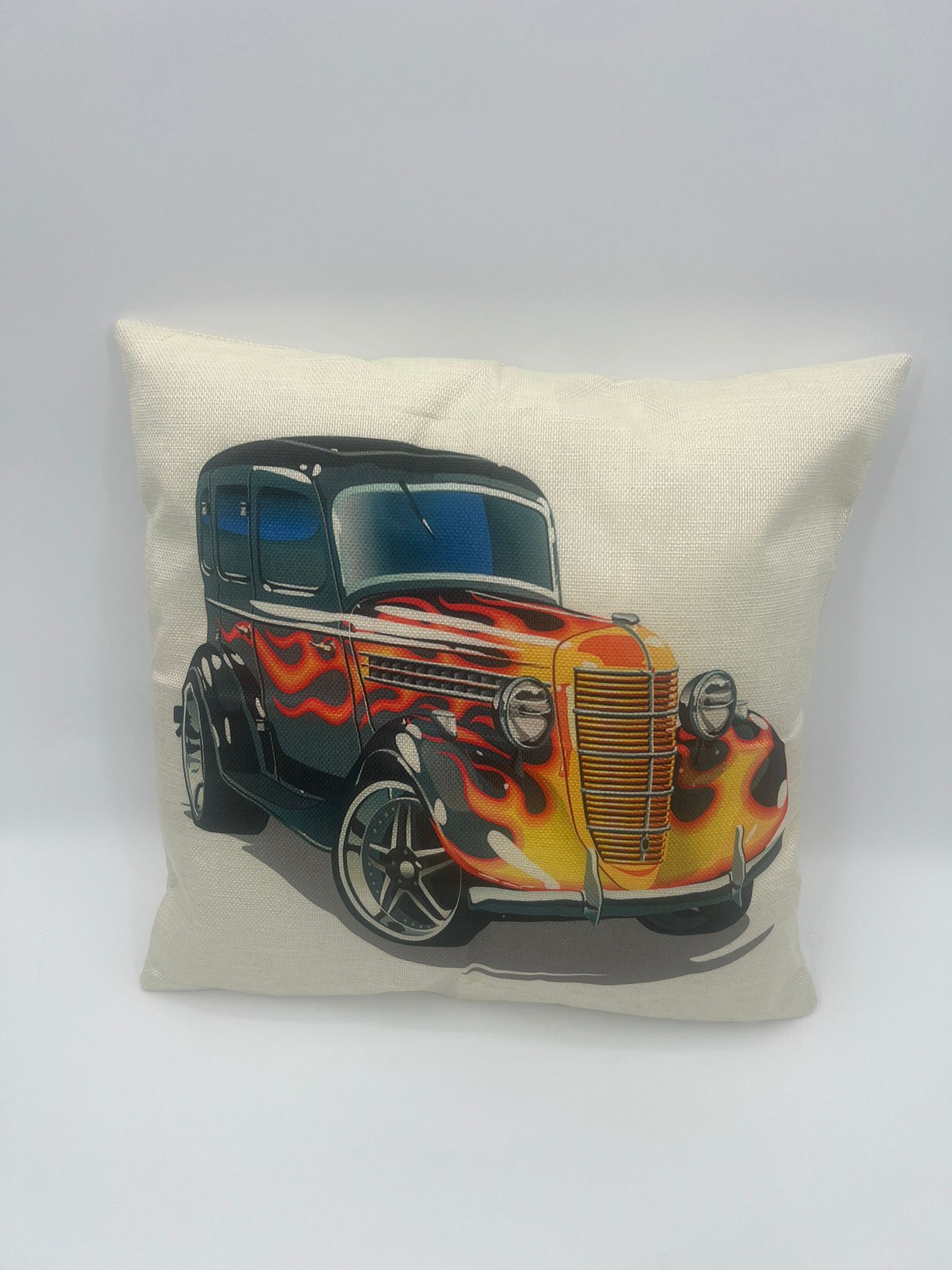Das "Auto 4" Kissen ist eine wundervolle Dekoration in oldschool Design für das Kinderzimmer des Nachwuchs US Car Fahrers.