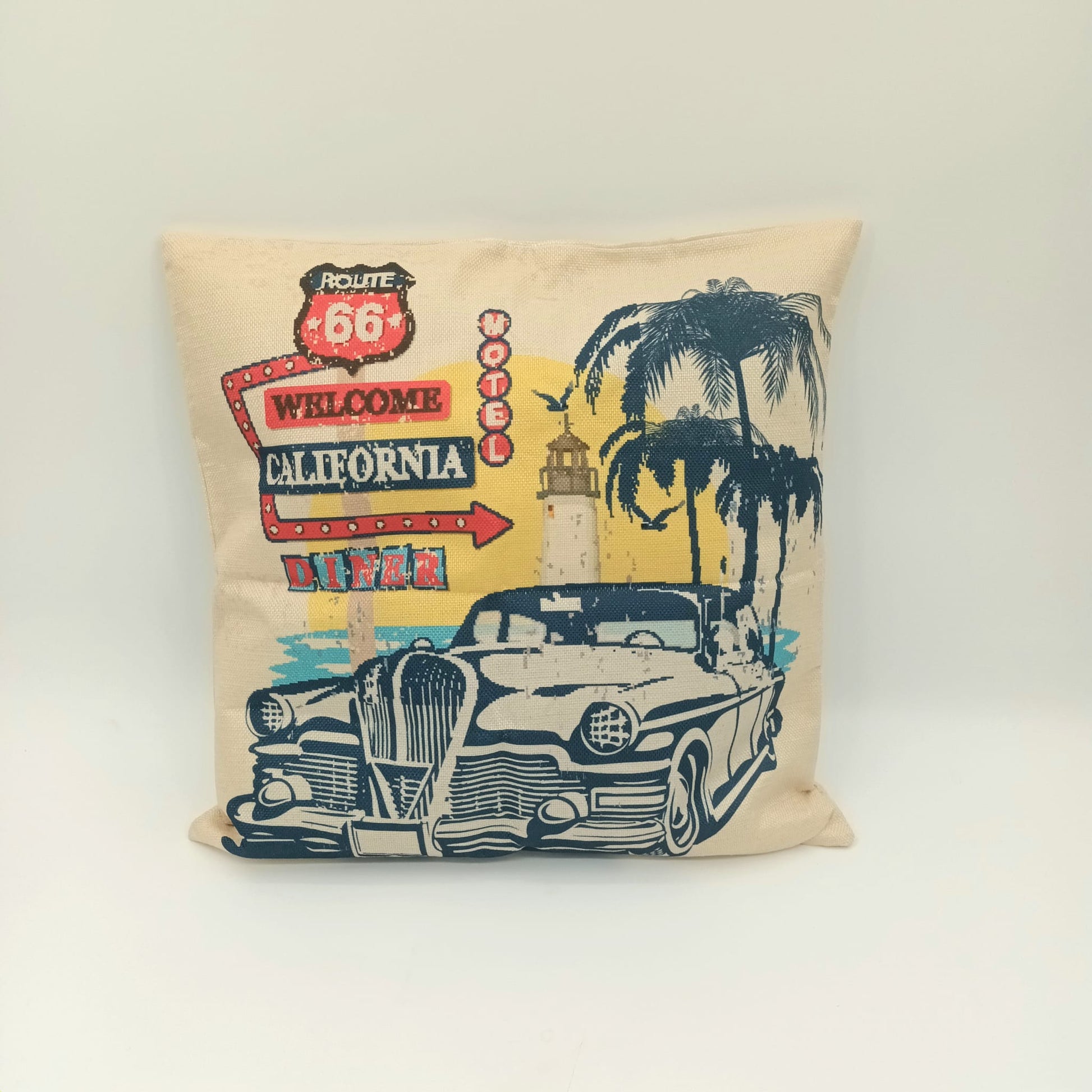 Das "Welcome California" Kissen ist eine wundervolle Dekoration für Ihr Zuhause. Das Design ist detailreich und es wird Ihren Räumen einen nostalgischen Look verleihen! Wahre Liebhaber der Route 66 werden begeistert sein! Erleben Sie die Nostalgie und eine ganz neue Welt.