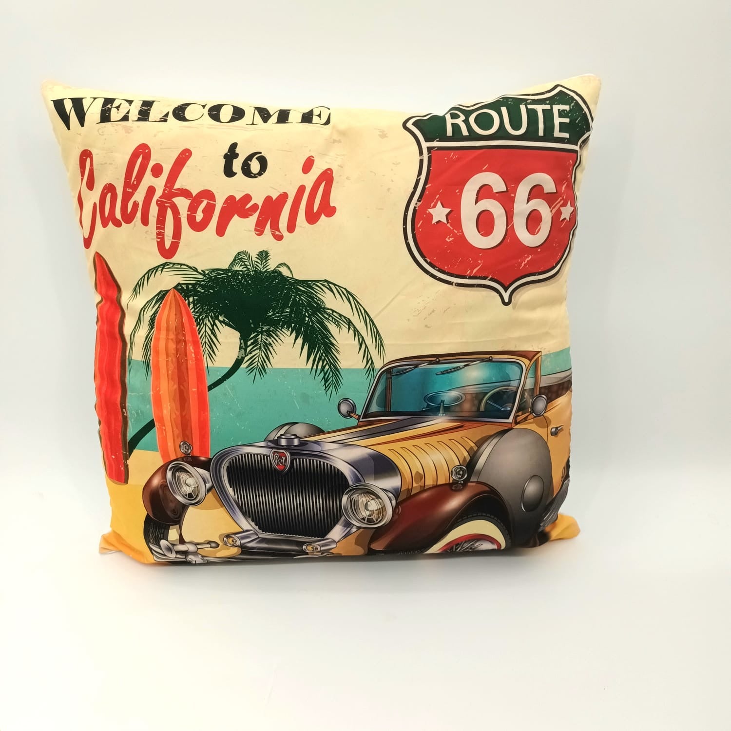 Das "Welcome to California" Kissen ist eine wundervolle Dekoration für Ihr Zuhause. Das Design ist detailreich und es wird Ihren Räumen einen nostalgischen Look verleihen! Wahre Liebhaber der Route 66 werden begeistert sein! Erleben Sie die Nostalgie und eine ganz neue Welt.